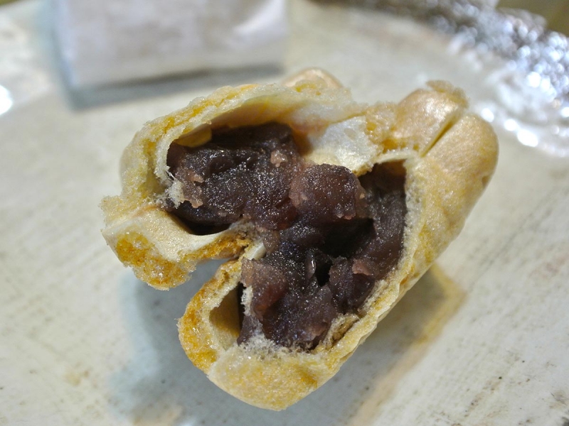 中身はというと、現在主流の「求肥・餅」は入っていなく、餡子のみ。原材料は「砂糖、小豆、水飴、還元麦芽糖水飴、皮種、寒天」の6種、トレハロースは入っていません。