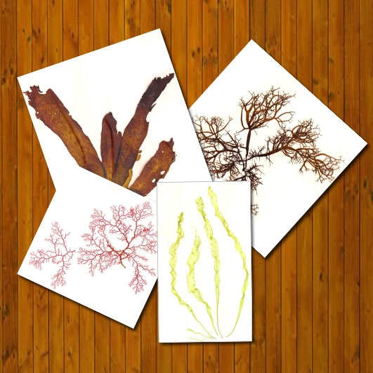 海藻の押し葉と貝紫染め