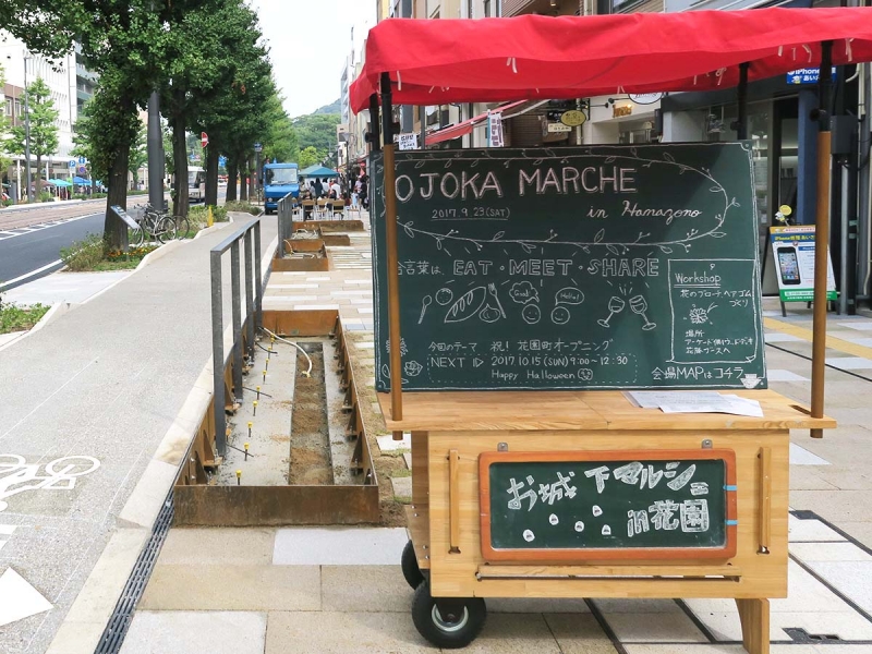 お店の紹介:お城下マルシェat花園は2017年9月23日から松山市中心部にある花園町通りで毎月行われているマルシェです。EAt MEET SHAREを掲げ、生産者など自らの商品を出品する出店者と来場者、地域が心地よく過ごせる時間と空間をつくっています。