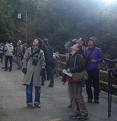 前回の時も感心したのですが、野鳥の会の皆さんは鳥のさえずりを聞いただけで、それが何の鳥か区別がつきます。また木の葉がカサッと揺れただけで、そこに鳥の姿を発見します。指を差されても私には全く見えません。とにかく目が良いのには驚かされます。さらに野鳥の種類から雌雄まで正確に識別でき、おまけにその鳥の特徴やおもしろいエピソードまで詳しくご存じなのです。それほど野鳥がお好きなんですね。鳥のお話をするときは目がキラキラと輝いて見えます。