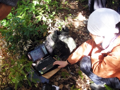 つづいて早速、設置してあったカメラからSDを取りだして、その場でパソコンで確認をする。「映ってる、映ってる」。シカ、タヌキ、ウサギがやってきていたのだ。
