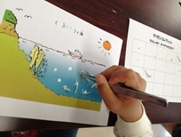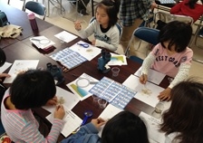 そのあとチリモンに移りました。まずイワシとエソの違いらら始まり、様々な魚をマス目の紙に20種類集めて行きます。