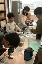 さて、部屋に戻っていよいよ観察開始です。土をふるいにかけて目をこらすと、あ!いたいた。小さな生き物達が見えてきました。
