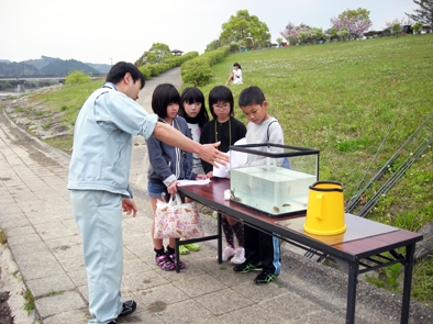 4月14日(日)の午後、松野町の「おさかな館」で採集の仕事体験の授業が行われました。参加者は松野町西小学校の5年生3人と、親子連れ、それに私の6人。まず会議室で、津村館長のお話とココロザシ大学の生物多様性の解説のあと、今日の採集の要領を担当の恩田さんから伺いました。