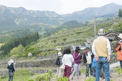 そんな歴史ある千町の棚田で暮らす山内さんと、千町での暮らしや先人の知恵である水抜き井戸や石積みのお話伺いながら散策します。