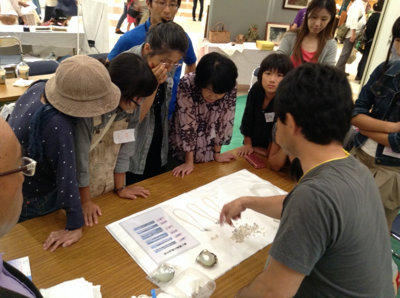 あこや貝から取り出した真珠を見ていただき、真珠の見方、どういう真珠が