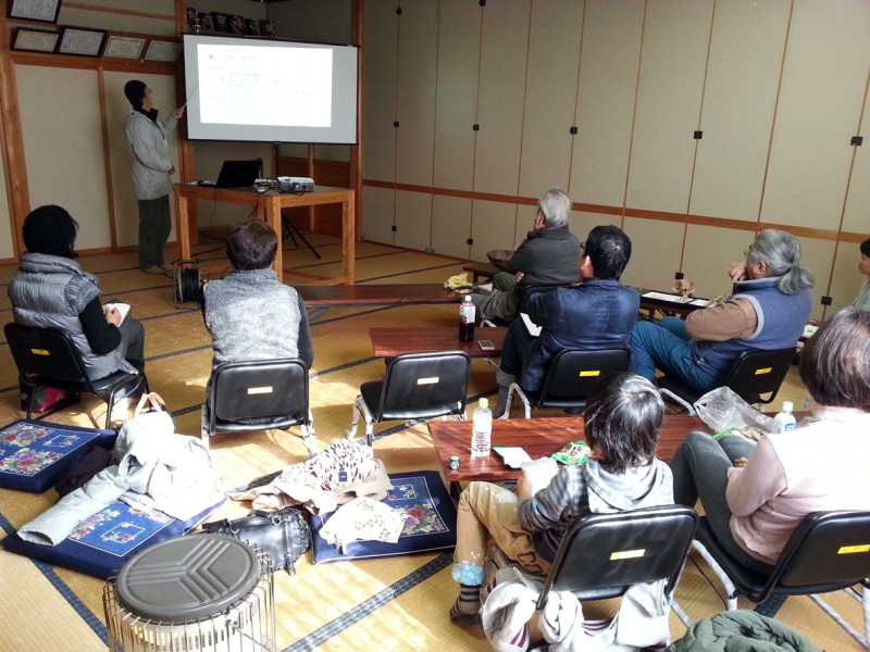 本来、身近な環境で育つ植物を利用して生み出される泉貨紙。身近な果樹である渋柿から生み出される柿渋。この両者が合わさるとじつに丈夫な紙になり、生活用具に用いられたことが体感できた授業でした。里山の生物多様性と暮らしの知恵がよく理解できました。(報告=Water Good-well)