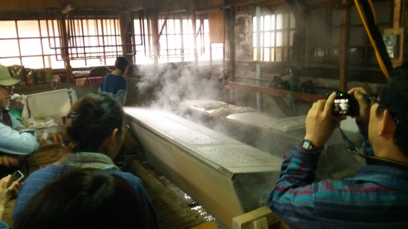伝統工芸士による紙漉きはその日の天候や季節によって
