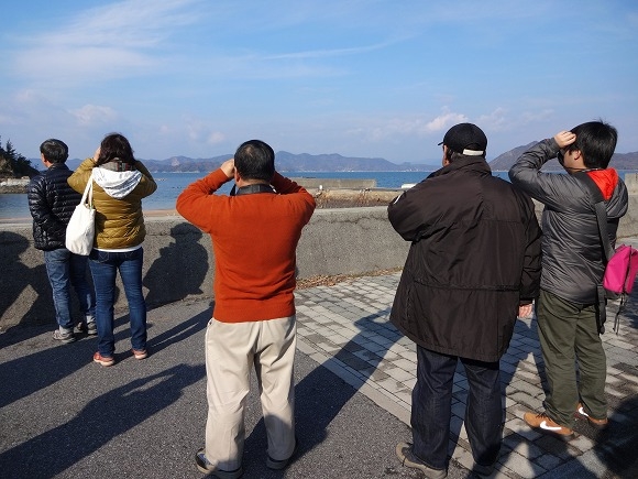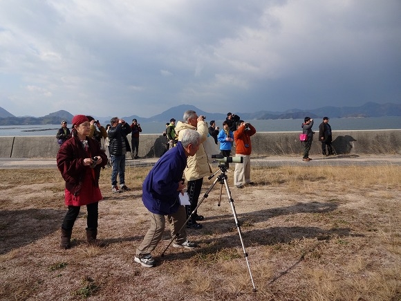 まずは小澤潤先生から生物多様性のお話があり、その後、双眼鏡を配っていただいて、山本栄治先生の案内で野鳥観察が始まりました。
