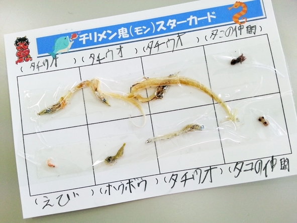 今回の「ちりめん鬼(モン)スター」では、「ちりめん"たち"」から「ちりめん」ではなく、さまざまな「鬼(モン)スター」を探し出すという"逆選別"でしたが、子どもたちが探し出しはじめると、出てくるわ、出てくるわ。