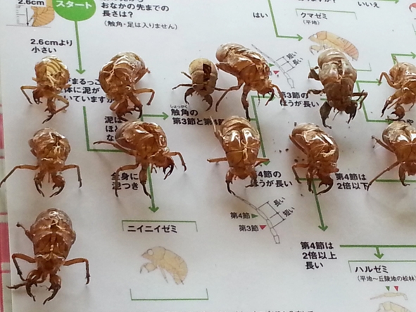 今回のセミのぬけがらで、セミの種類を知るというのは、子どもの頃には思いつかなかった。生命を奪うことなくセミを知るという、これまで考えもしなかった視点に気づかされ、懐かしさ以上によい体験ができたと思う。(報告=Tossy)