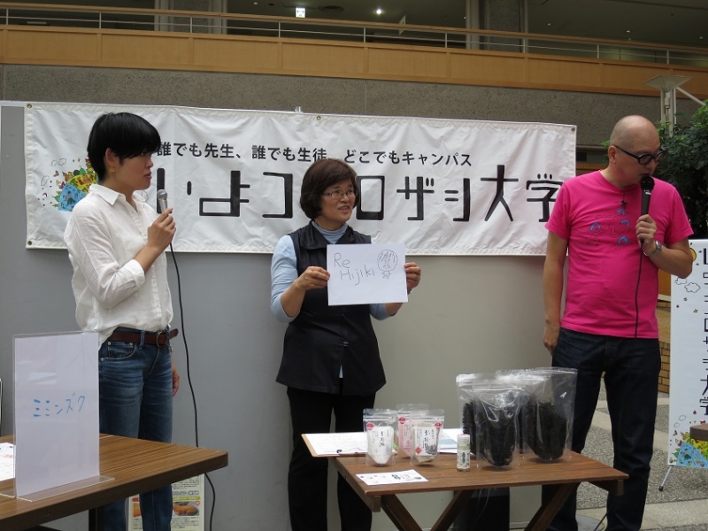 まずは、試食。ラヂヲ先生が、「最初の直感を大切にして」とのアドバイスに、神経を研ぎ澄ませて味わいました。その後も考えるながらポリポリと乾燥ヒジキを食べ、「塩っ辛いので酒のつまみにいいな」や「ふりかけが美味しいよ」など色々周りの声も聞きながら与えられた時間に精一杯考えました。