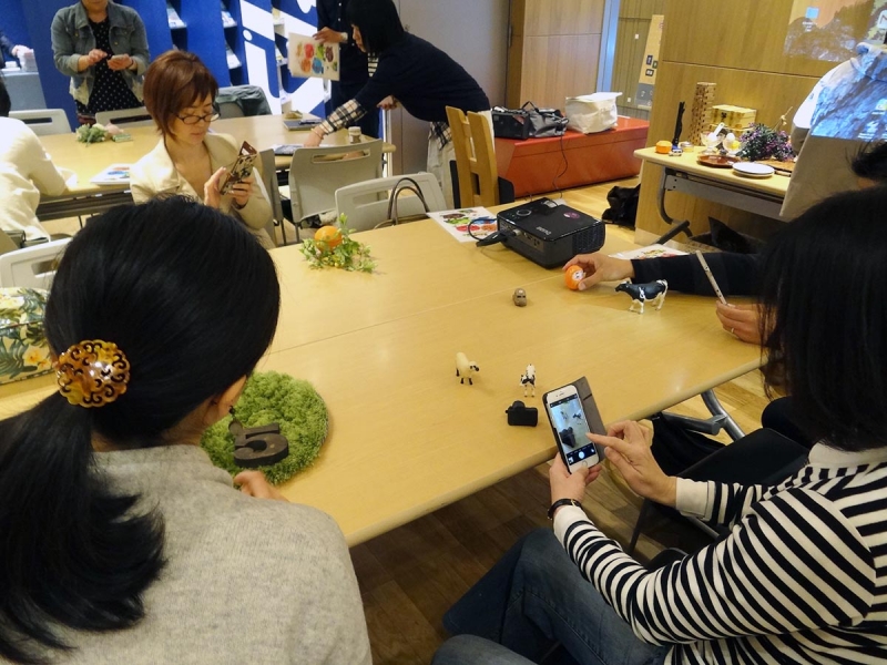 mame先生のレクチャーの中で印象的だった「良い写真とは見ていていやじゃないもの」を念頭に置き、用意くださった雑貨の中から牛や羊、そしてカメラの小道具をチョイス。気に向くままにそれぞれの位置を変えたり、奥行きや対角線も意識しながらパチリパチリ。ほんと、童心帰ったように夢中になれているのがまずは楽しくって。そして仕上がった写真を並べると、スートーリが浮かび上がって楽しくて。
