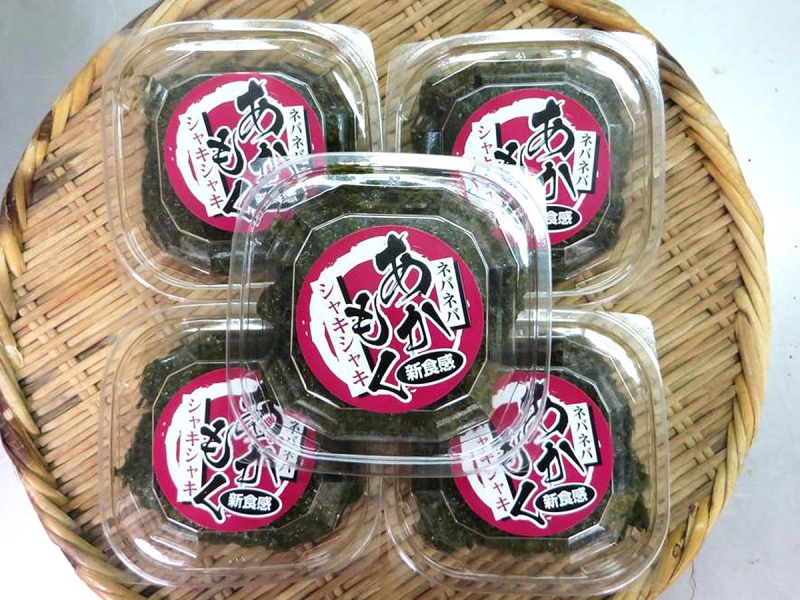 あかもくは近年、スーパーフードとして注目を集めている海藻です。全長8メートル程までに成長し、非常にねばりけのある海藻であり、その特性から漁船のスクリューなどにも絡まることがあるので、漁師さん達にとっては非常に邪魔な存在。別名「邪魔もく」とも呼ばれるものであったらしいです。