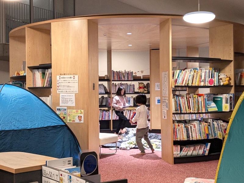 図書館にテントを張ったりキャンプ気分で楽しむことが出来るのが、斬新で良かったです。