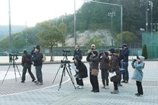 折りしも前々日の雪のため急遽場所の変更があったにもかかわらず、午前19名、午後13名の大人がワクワクしながらの参加。 各自持参の双眼鏡、先生の高感度の望遠鏡で何が見えるか、いざ出発!