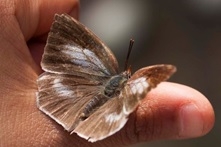 いよココロザシ大学に登録して、初めての授業でした。午前中は肌寒い日でしたが、観察会の始まる午後からは太陽の日差しが見え始め気温も上がり、少人数で出発し、八堂山の頂上をめざしました。少し歩いたところで、早速遠くに飛んでいる薄い青色のチョウを男の子が発見。今川義康先生から手作りのミニ図鑑をもらって、みんなで確認。「あれはルリシジミ。主にバラ科・マメ科の花に集まってきます」と説明を聞きました。名前を聞いた時「シジミって、貝のシジミ?!と思いながら、今までは「○○チョウ」としか聞いたことがなかったので不思議に思いました。登り口に入ると、飛んでいるチョウに今川先生が静かに近づき、網をかっこよく振り回してチョウが網に入ると「入った!」とみんなで歓声をあげ、観察と撮影タイム。カメラマンの内田年泰コーディネーターさんからパシャパシャと音が響いていました。その名は「ウラギンシジミ」で、羽の表は茶色に白い線があり裏は銀色にキラキラ光っていました。「裏が銀なのでウラギンシジミ」と学生の方がつぶやいていたので納得しました。こんなに近くでじっくりとチョウを観察するのは初めてのことで、チョウは飛んでいる時見えるのは裏の羽、表はほとんどかくれたままだと、あらためて思いました。いざ頂上をめざし、青い空、満開の薄いピンクの桜や白いモクレン、足もとには紫色のスミレなど春をいっぱい感じながら、進みました。頂上付近で「ヒオドシチョウ」を発見。オレンジ色の羽でニレ科・エノキなどに集まるそうです。ここでまた足や口や顔の観察しながら今川先生の説明。粉はリンプンと言い、手で触れば触るほど模様が消えてしまう。今までチョウは同じ速さで飛んでいると思っていましたがそうでは無い事、草花だけではなく、若い芽や木に止まって食べるチョウもいることも教えていただきました。帰り道では、きれいなレモン色のキタキチョウを見つけて、「チョウは、暖かい午後3時ごろまでしか飛ばない」という説明を聞きながら、あっという間の楽しい時間が過ぎていました。日頃はなにげなくチョウを見ていましたが、今度からは少し気をつけて見てしまいそうです。どうもありがとうございました。今後もいろいろな授業に参加して、心豊かに過ごしていこうと思います。