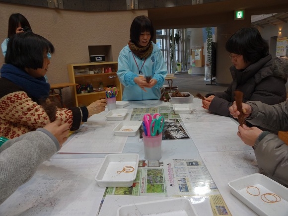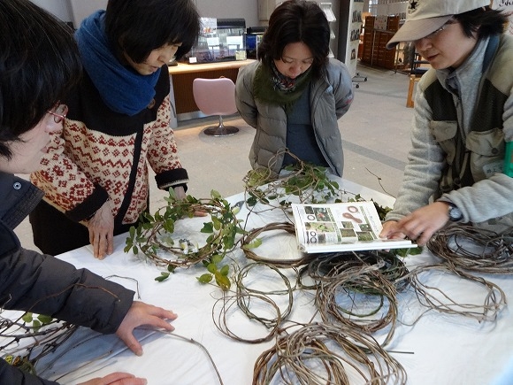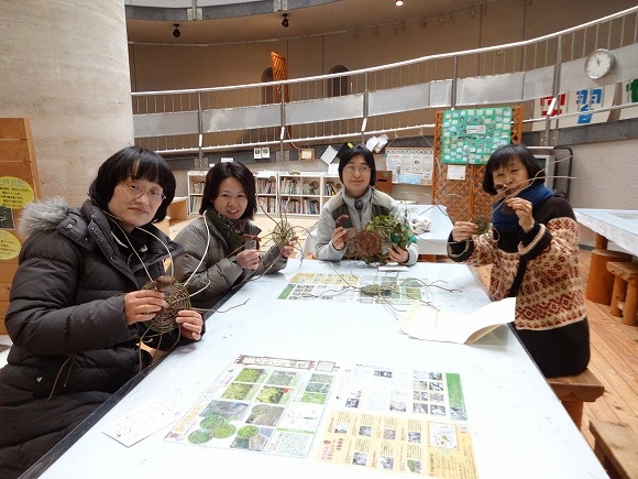 採取したつるで何かを編みましょう。