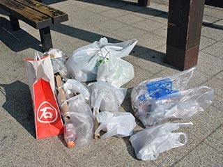 清掃場所は、平和通りから堀之内にかけての沿道とお堀の周辺でした。一見、コースの沿道は綺麗に見えますが、植込みの中、道路の端など実は見えにくい所にタバコ、空き缶、ペットボトルがありました。一つ一つは小さいのですが、その量はビニール袋一杯になりました。残念ながら心ない方がいることに心が痛みました。