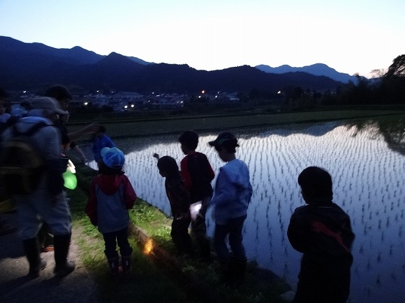 各々が懐中電灯を手にして田んぼに向かいます。