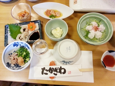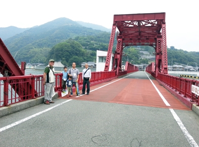 そのあと、長浜町の赤橋通り商店街を通って赤橋まで行き、肱川河口の様子を見て、長浜ふれあい会館でフラダンスを見て、港に近い「たかざわ」でハモ料理の数々をいただきました。ハモのしゃぶしゃぶ、新鮮でないと食べられないハモの「生肝」や「浮き袋」など、産地・長浜ならではの珍味を堪能しました。