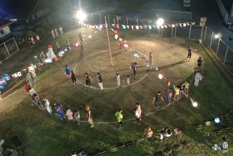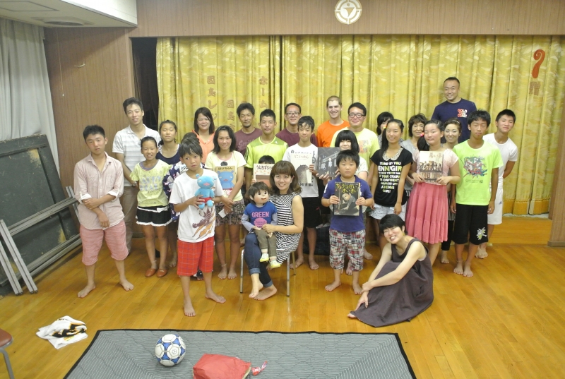 直前まで参加していた前夜祭とは違い、夜の魚島がつくりだす何とも言えない不気味な雰囲気の中、はじめに絵本を5冊ほど読んでくださりました。どの絵本もぞっとはするもののすごく面白くて、今までは絵本といえばどうしても子供向けというイメージが強かったのですが、えっちゃんさんの語りで話の中の人物や動物などをまるで生きているように感じることができ、そのことが話をすごくリアルにし、また場所が夜の集会所ということもありより一層ぞっとする気分になりました。えっちゃんさんの語りはなんてすごいんだろうと思いました。絵本で十分冷んやりとした後に「黄色いリボン」という話を語ってくださりました。実は私は「黄色いリボン」は今まで聞いたことが無かったので、じっと聞いているとあれ?怖い話ではなく、むしろ素敵な話かな?と思ってしまったのですが、最後のどんでん返しに一気にぞくっとしてしました。そしてそのあとはえっちゃんさんのパートナーである「ぐりちゃん」としばらくお話をした後、終了となりました。終了した後もまだ感動と冷んやりとした余韻が残っており、鳥肌が立っていたのを覚えています。