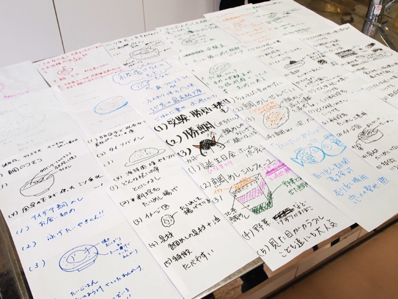 試食会の後は、伝統的な鯛めしをアレンジして、参加者それぞれが新メニューの提案。