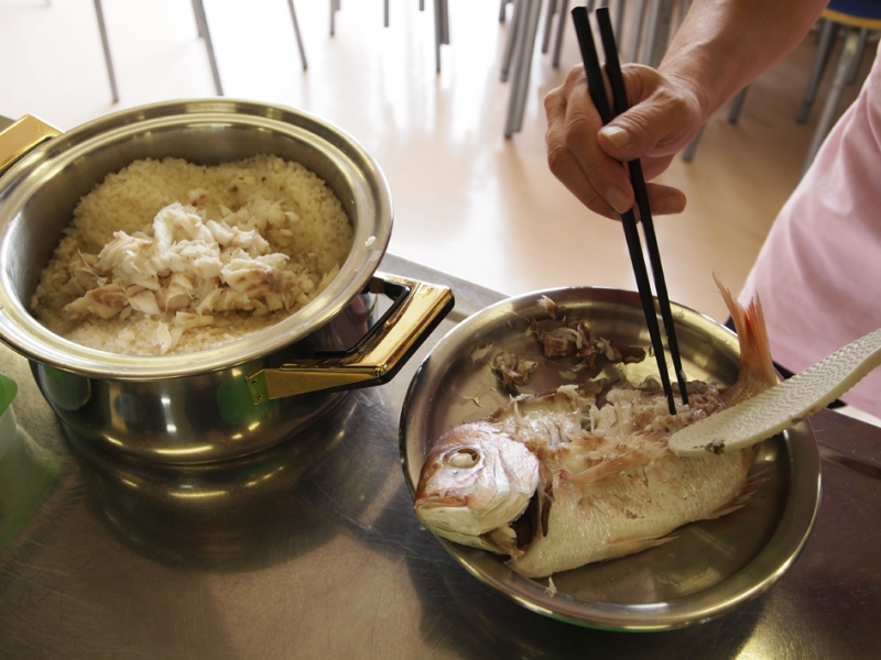 授業の始まりは、先生が作ってくださった「北条鯛めし」の試食。