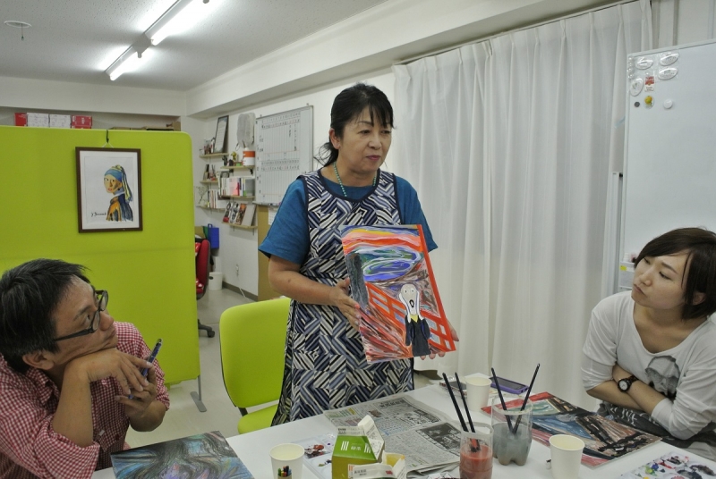 模写中はみんな真剣で、それぞれの作品の背景に想いを馳せていました。最後に出来上がった作品について発表をしていきました。同じ作品を模写しているのに発想がまったく異なり、ユニークな作品ばかりが並びました。『こんな感じ方もあるのか!』という個性的な発表ばかりで、とても刺激を受けました。