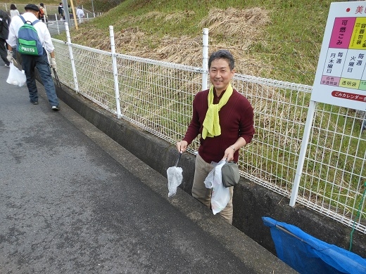 ぞろぞろと ゴミを拾って 柿の道