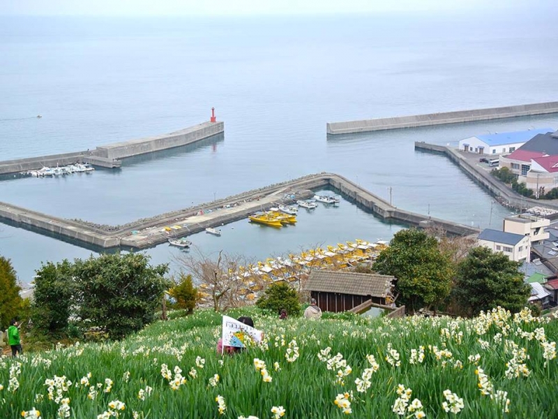 少し休憩を取った後、今が見頃だという「水仙畑」までしばしの散歩。