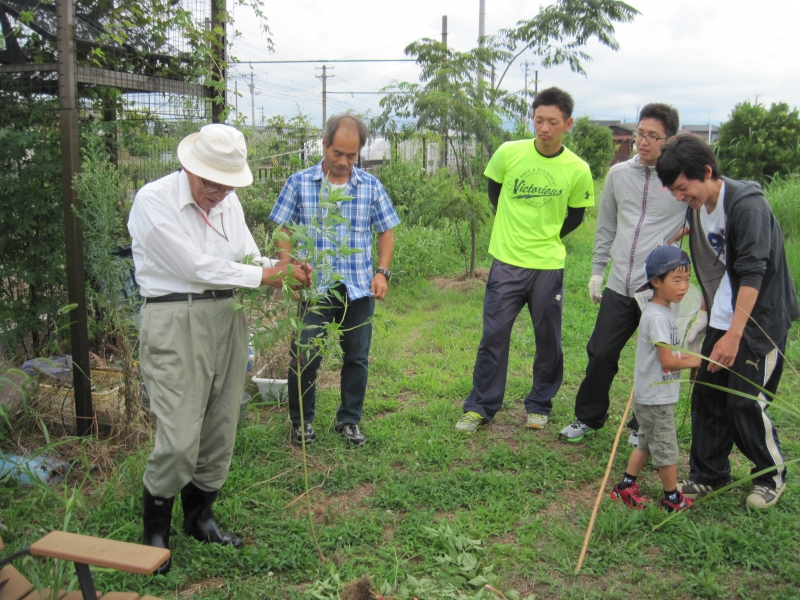 最初にある外来種の植物を集めることをしました。ビオトープには数多くの草花があり、