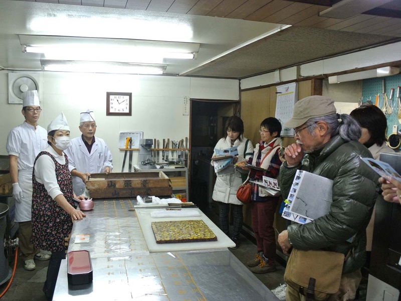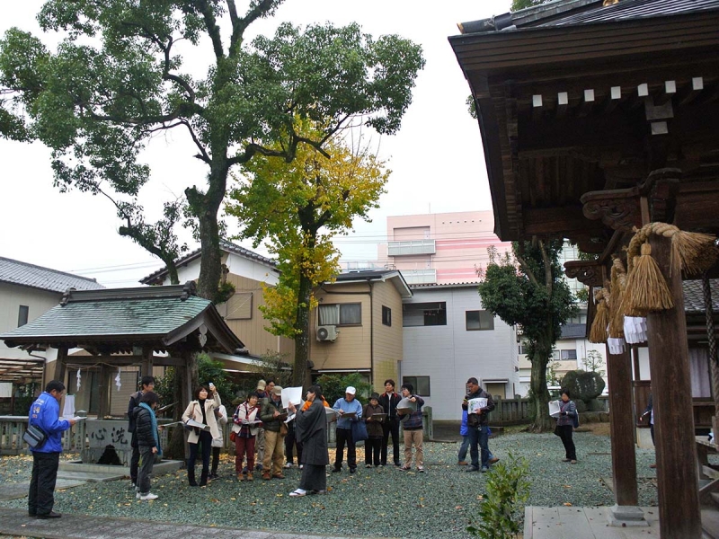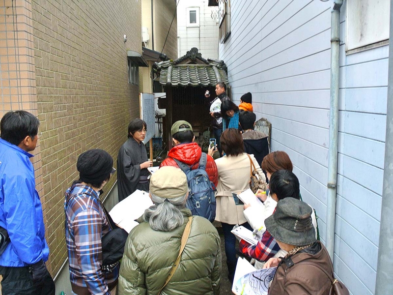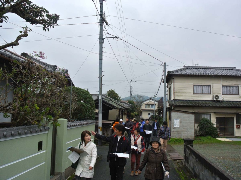 大洲肱北地区はJR大洲駅から肱川大橋までの一帯。普段は通り過ぎてしまう商店街の中にも「地蔵」が祀られていたり、かわいいブタ地蔵もあったり、商店街から横道に入ると温泉マークが突如現れたと思ったら、三叉路で迷路のように分かれ、その先は藩政時代から区割りが変わっていない地区に入り、「昔はこの幅だったのね」と道の狭さに驚きました。