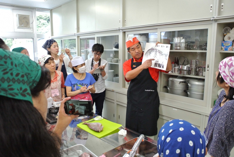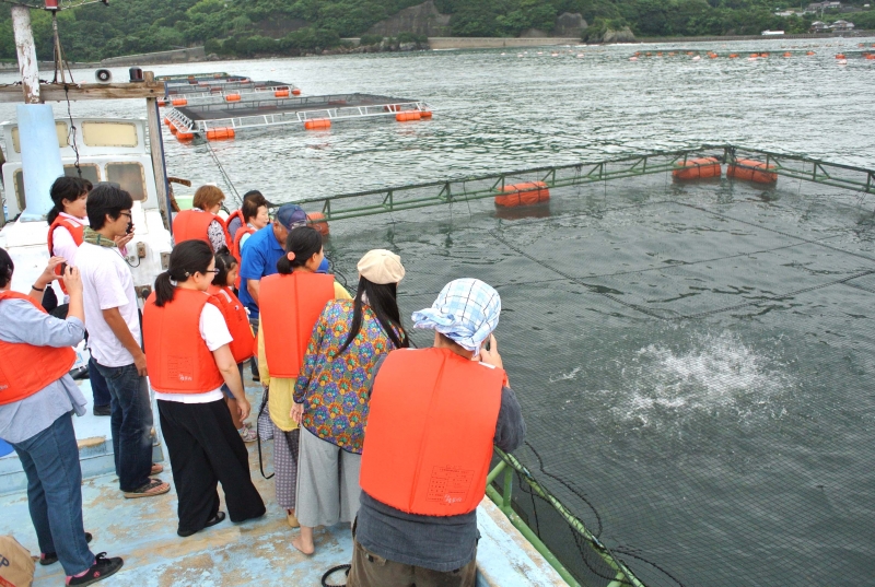 「えひめ南予通信大学」を受講しており、インターネットだけでは分かりにくい部分もあり、対面学習に申し込みました。まず、真鯛の養殖は市場の50%以上というシェアの証拠に「回転寿しで流れている真鯛の5枚に1枚は愛南町産の真鯛」と、愛南町の兵頭さんが教えてくれたのは驚きでした。そして、「養殖真鯛」と「天然真鯛」の違いはインターネットでは伝わりにくい一つで、目の前に並ぶ二つは同じ真鯛でも「養殖真鯛は深く潜れないので日焼けで色が天然に比べると焼けている」「養殖真鯛は網の中で生活しているので網に擦れることも多く尻尾が擦れて黒ずんでいる」などの情報は、現場でないと得られない情報で参考になりました。