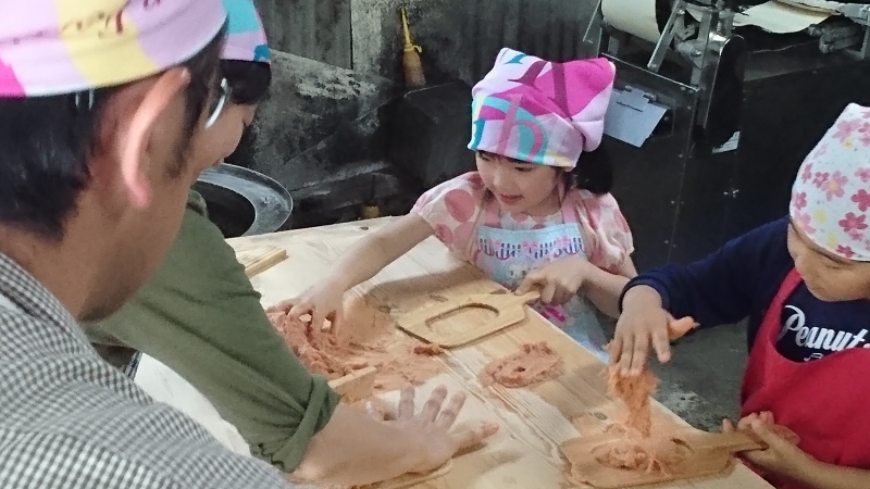 今回の教室は八幡浜市。西日本一の魚市場を有し、毎日のように新鮮な魚が水揚げされる魚の町。市内には「じゃこ天」や「かまぼこ」を作るお店や工場も数多くあります。その中の一軒、地元の商店街の「八日市」では、できたてのじゃこ天を求めて行列ができる、まさに市民の味「くずし鳥津」でのじゃこ天づくり体験です。