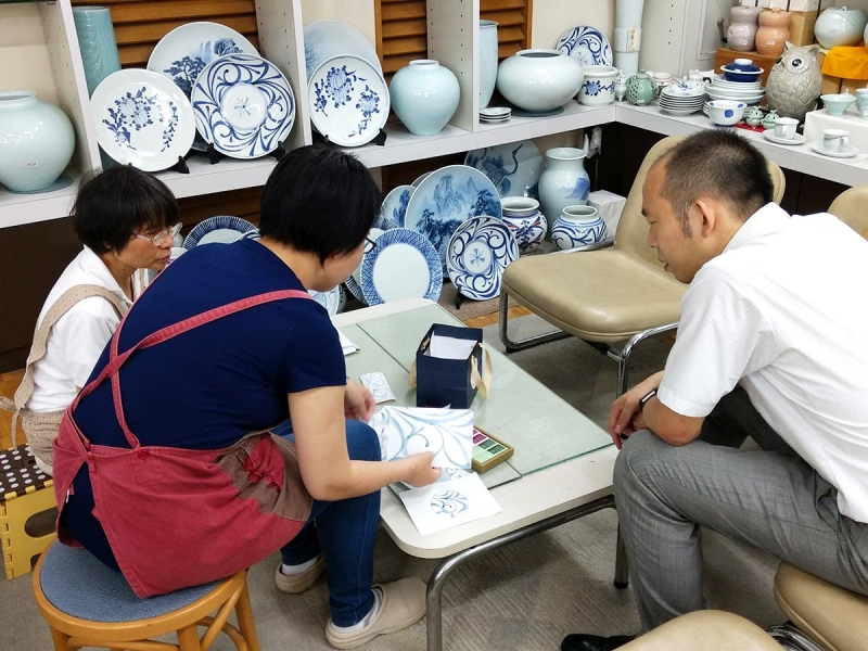 前回から唐草模様を求め、最も古い梅山窯へ相談し箱に見合う唐草模様の打ち合わせを続けています。絵付師との意見交換の末、一つの結論に達しました。7月10日の最終回ではこれまでの振り返りを行い、市民のアイデアから生まれた「こざくら」の新パッケージの門出を祝ってください。