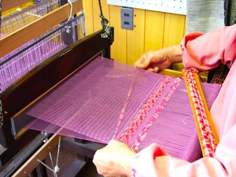 大佐田小学校の校舎跡を利用した裂織り(さきおり)の体験施設「オリコの里」。裂織りとは、古着の布をジグザグに裂いたものを、横糸に用いて織りあげた丈夫で独特の風合いを持つ織物で、この地域では古くから仕事着や祭りのハッピ、外出着などに使用されてきました。使い古した布から紡ぎ出される裂織りは、偶然の美と先人の知恵が織り込まれており、どこか懐かしさも感じます。当時の裂き織の見学、実際に機織り機を使ってランチョンマット作りなどの体験を行ってもらいます。