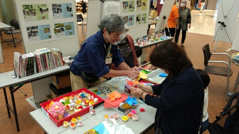 そして、これまでに作られた折り紙の展示も行われ、また事前にたくさん作ってくださった花の折り紙などは持ち帰り自由!という太っ腹な授業に子供達は大よろび、そして保護者も自宅などで子供達に教えたいのでしょうか?宮川さんに個人レッスンを受けている様子も。紙さえあれば、誰でも作れる折り紙の魅力を垣間見ました。
