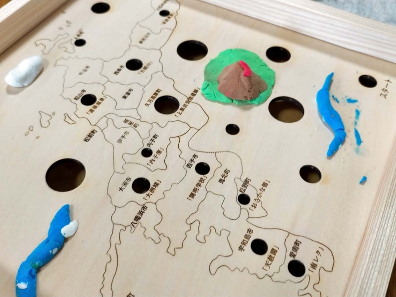 愛媛県を舞台にスタートからゴールまで、ビー玉を転がす「えひメイロ」ですが、難易度を自由に設定できるのが特徴です。障害物などを何も置かなければゴールへ一直線ですが、所々に「落とし穴」があるので、気をつけてください。