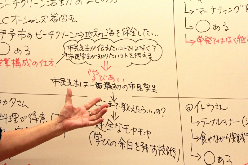 興味関心のあること、学びたいことなどを共有し、どのように市民を対象にした授業は構想したらよいか?の意見交換へと続きました。