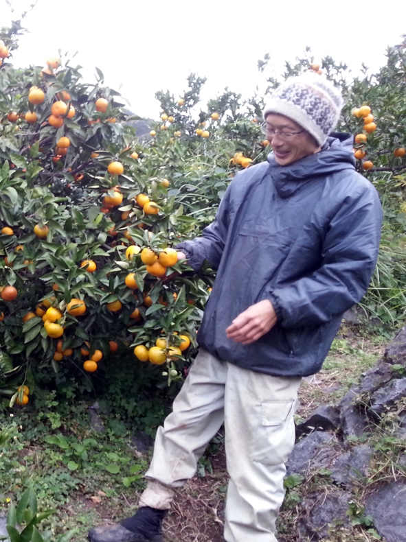 田園風景のまだ残る、昭和47年の東京に生まれ、子供の頃から、農業への憧れを持つ。26歳で脱サラし、千葉県で農業の修業を始めるが、化学肥料と農薬を利用したスタイルであった。30歳の時、もっと自然にやさしい形を目指し、「無茶々園」を訪ねて愛媛へ移住。有機農業を本格的に体験。2005年、農地を借り受けて無茶々園の生産者となり、開園以来一度も農薬を使用せず、2014年で10年目。 海と山と人、光と風と水を愛す。